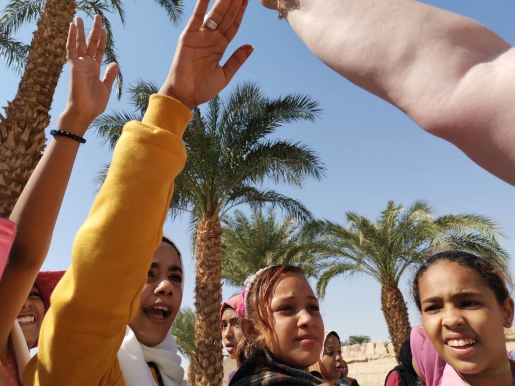 Standing with your back to Medinet Habu, turning right you will see a village ‘square’, probably with a few vehicles parked up. On the other side, there is a police checkpoint. next to this is Cafe Desert Rose. We visited here a couple of times and chatted with Adam, a really nice, friendly bloke. His family owns the cafe. If you eat there, his mother cooks in their home directly behind the cafe and they bring the food across. And it is well worth eating here, the food was very reasonably priced and good. While talking with Adam, I told him about being mobbed by the kids. He said that they probably came from a school in an area that is away from tourist area, so they probably hadn’t seen foreigners before. A foreigner in a cool* wheelchair too! For people out of town, tourists are ‘interesting’. We found this everywhere. Although to be honest, a lot of Egyptian people, and children in particular, were always keen to say ‘hello‘ and ‘high five‘.